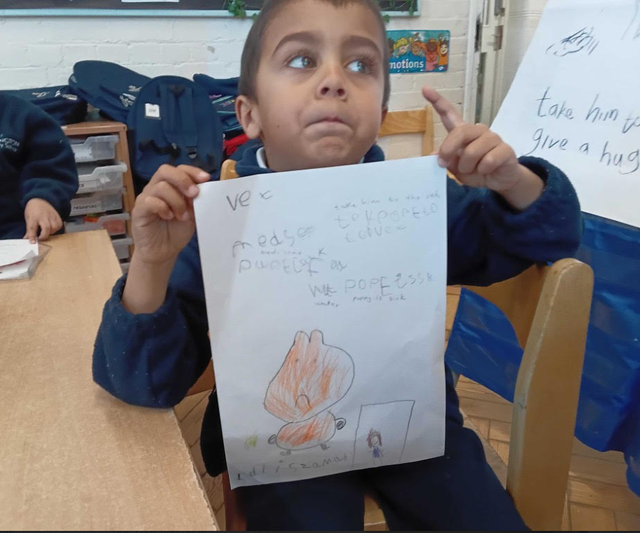 Star learner from pink class is Umar. He has made huge progress since September. Umar is now on green ditty books in phonics and he is able to read a book independently. He also uses his phonics knowledge to support him with writing sentences. Every week Umar pushes himself to write sentences starting with capital letters. His letter formation is now becoming clearer which has made it easier for him to read his own writing. Ms Hafeez and Ms Opoku are proud of him.