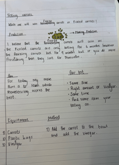 • Year 5 carried out an experiment to determine the best methods for preserving food, looking at how different factors impact freshness.
