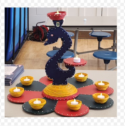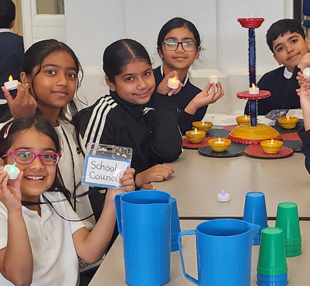 It was a very busy day for our school councillors on Wednesday the 22nd of October 2025. During lunch time, they helped to set up the dinner hall with Diwali decorations, as part of our themed monthly projects in partnership with our school caterers Juniper. A massive thank you to Zeno (Y2C), his sister Phoebe (Y6M) and their parents for creating an amazing master centre piece.Well done to Isa (Y5H) for organising the production of Rangoli patterns and Y2C for creating a lovely star garland organised by Zeno and Aa'isha. Thank you to Vrinda (Y6M) and her family for lending us their LED tealights. Watch this space for our new theme next month!During parent's evening some of our Year 5 and Year 6 councillors gave up their time after school to help set up a school council information stand, which included a suggestion box, activities and a quiz.
