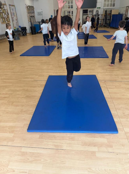 Year 1 and Year 3 pupils have been developing their ball skills, practising throwing, catching, rolling, kicking, and aiming through fun and active games. These activities have improved hand–eye and foot–eye coordination, control, and teamwork, while also helping children build confidence in following instructions and working with others. Meanwhile, Year 2, 4, 5, and 6 pupils have been focusing on gymnastics, exploring different ways of moving, balancing, and travelling with control and confidence. They have practised a variety of shapes, balances, and simple sequences, learning to move safely while increasing flexibility and body control.