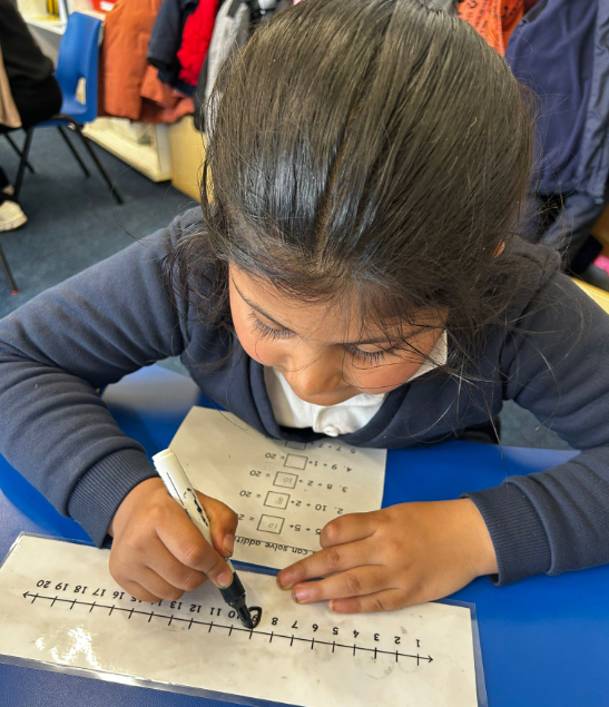 Meanwhile, Year 1 has learnt how to add two numbers by counting. They used a number line to help work out the answers to maths problems.