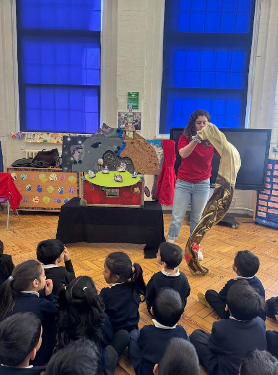 This week in reception, the story builders from ‘Discovery centre’ came into school and completed a workshop with each class. The children took part in an interactive storytelling performance, explored story structures and settings, and got the chance to build their own brand-new story. The children were amazed as a magical Story World unfolded before their eyes from a special, bespoke suitcase. Inside, they found mountains, rivers, villages, a growing beanstalk… familiar characters and magical settings from traditional tales brought to life.